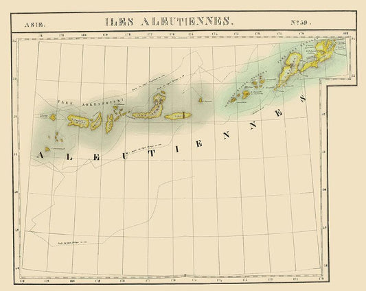Aleutian Islands Alaska - Vandermaelen 1827 White Modern Wood Framed Art Print with Double Matting by Vandermaelen