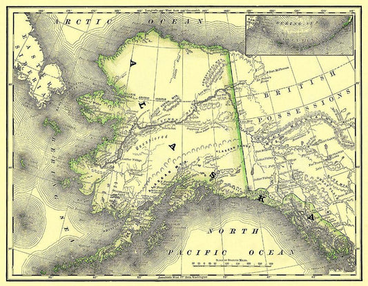 Alaska - Rand McNally 1897 White Modern Wood Framed Art Print with Double Matting by Rand McNally