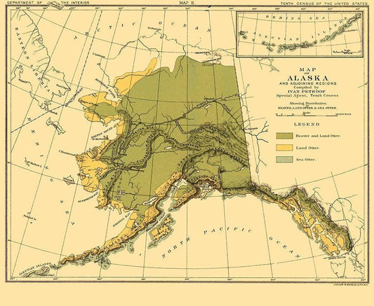 Alaska - Dept of Interior 1879 White Modern Wood Framed Art Print with Double Matting by DOI