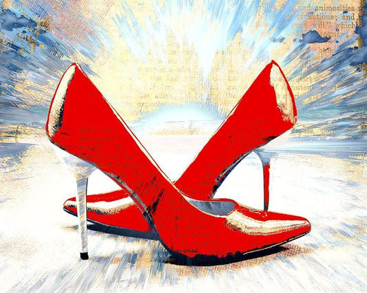 Hot Red Pumps White Modern Wood Framed Art Print with Double Matting by Bolokofsky, Ronald