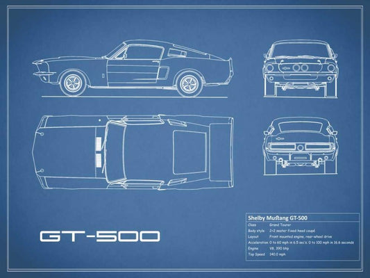 Shelby Mustang GT500-Blue White Modern Wood Framed Art Print with Double Matting by Rogan, Mark