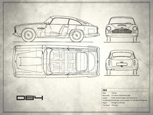 Aston DB4 White White Modern Wood Framed Art Print with Double Matting by Rogan, Mark