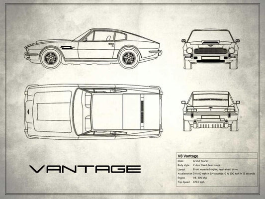 Aston V8 Vantage White White Modern Wood Framed Art Print with Double Matting by Rogan, Mark
