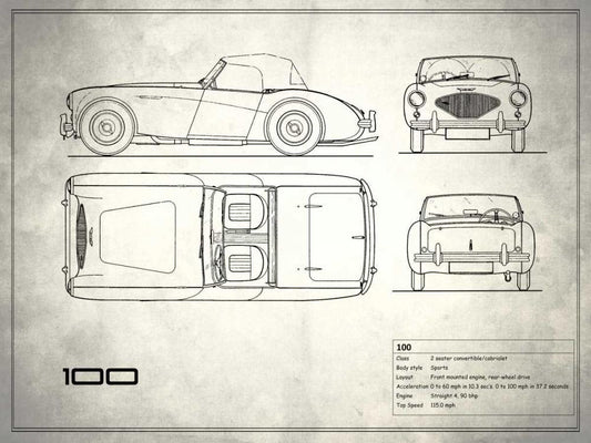 Austin-Healey 100 White White Modern Wood Framed Art Print with Double Matting by Rogan, Mark