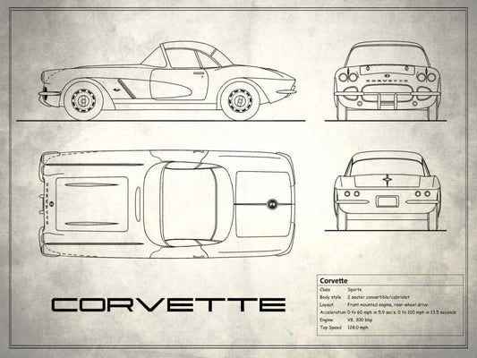 Corvette 33BHP White White Modern Wood Framed Art Print with Double Matting by Rogan, Mark