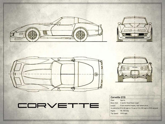 Corvette C3 White White Modern Wood Framed Art Print with Double Matting by Rogan, Mark