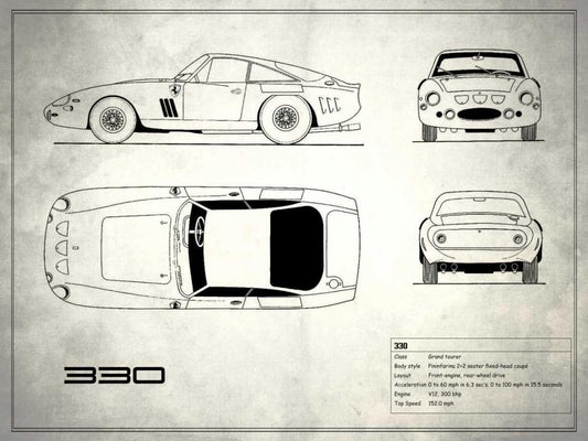 Ferrari 330 White White Modern Wood Framed Art Print with Double Matting by Rogan, Mark