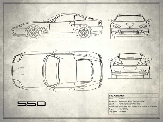 Ferrari 550 White White Modern Wood Framed Art Print with Double Matting by Rogan, Mark