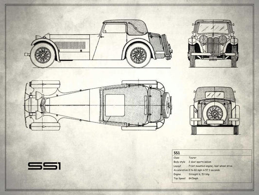 Jaguar SS-100 White White Modern Wood Framed Art Print with Double Matting by Rogan, Mark