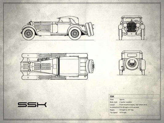 Mercedes SSK White White Modern Wood Framed Art Print with Double Matting by Rogan, Mark