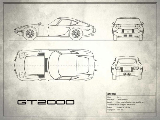 Toyota GT2000 White White Modern Wood Framed Art Print with Double Matting by Rogan, Mark