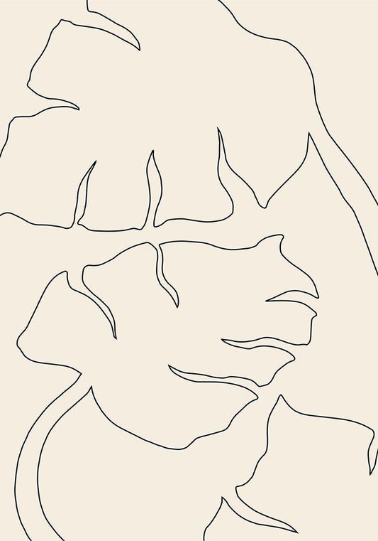 Monstera Outline White Modern Wood Framed Art Print with Double Matting by Artographie Studio
