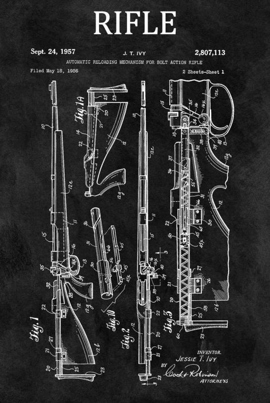 Bolt Action Mechanisim - 1956 White Modern Wood Framed Art Print with Double Matting by Sproul, Dan