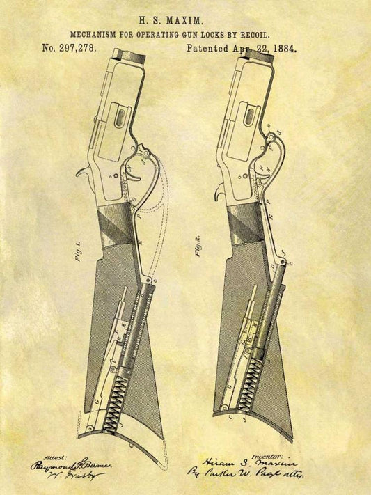 Gun Lock Recoil - 1884-Chalkboa White Modern Wood Framed Art Print with Double Matting by Sproul, Dan