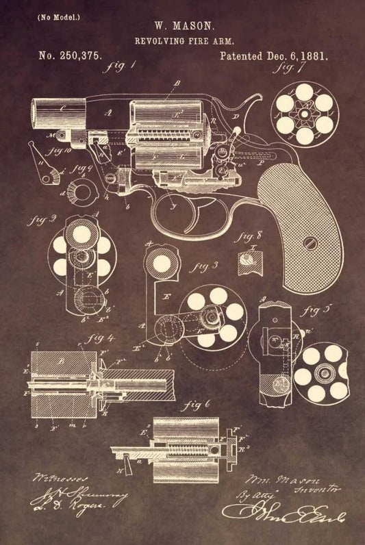 Revolving Firearm - 1881-Brown White Modern Wood Framed Art Print with Double Matting by Sproul, Dan
