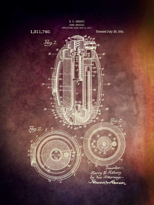 Hand Grenade - 1919 White Modern Wood Framed Art Print with Double Matting by Sproul, Dan