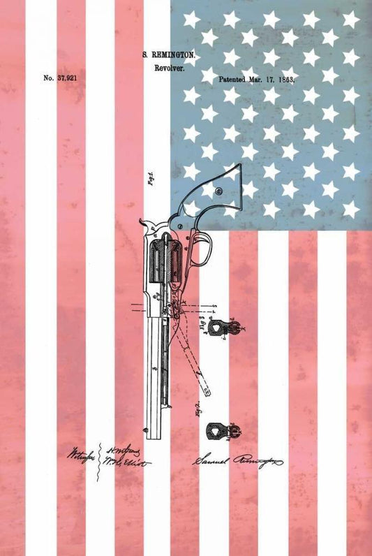 Remington Revolver and Flag - 186 White Modern Wood Framed Art Print with Double Matting by Sproul, Dan