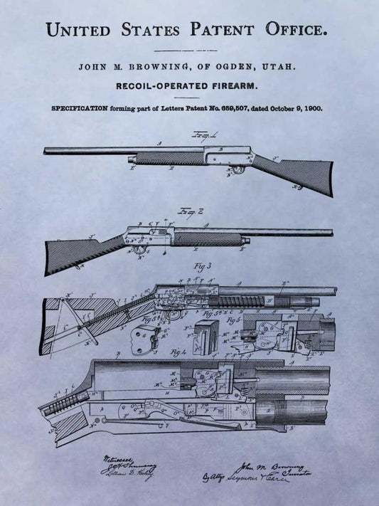 Browning Recoil Firearm - 1900 White Modern Wood Framed Art Print with Double Matting by Sproul, Dan