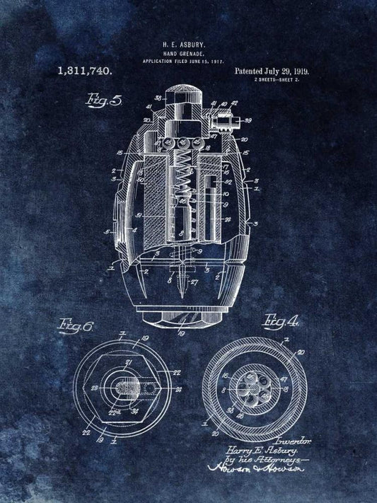 Hand Grenade - 1919- Black White Modern Wood Framed Art Print with Double Matting by Sproul, Dan