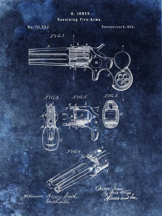 Revolving Fire Arms - 1874-Blue White Modern Wood Framed Art Print with Double Matting by Sproul, Dan