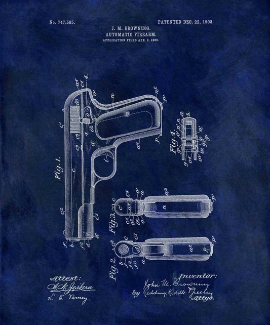 Automatic Firearm - 1902-Blue White Modern Wood Framed Art Print with Double Matting by Sproul, Dan