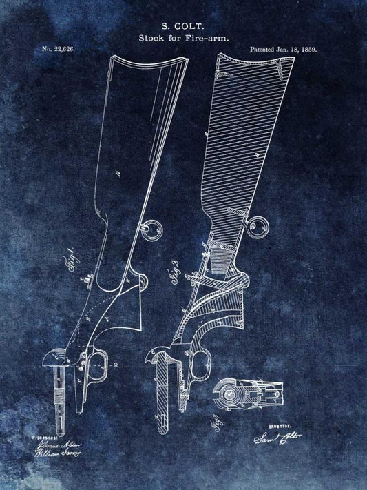 Firearm Stock,1859-Blue White Modern Wood Framed Art Print with Double Matting by Sproul, Dan