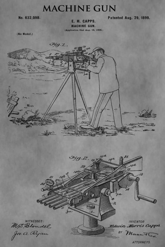 Machine Gun - 1899-Gray White Modern Wood Framed Art Print with Double Matting by Sproul, Dan
