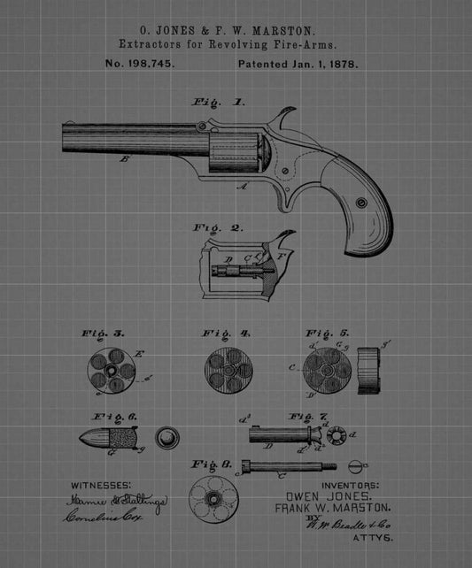 Revolving Firearm - 1881-Black White Modern Wood Framed Art Print with Double Matting by Sproul, Dan