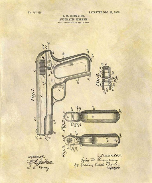 Automatic Firearm - 1902 White Modern Wood Framed Art Print with Double Matting by Sproul, Dan