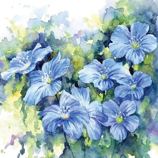Spring Flowers in Blue White Modern Wood Framed Art Print with Double Matting by Anonymous