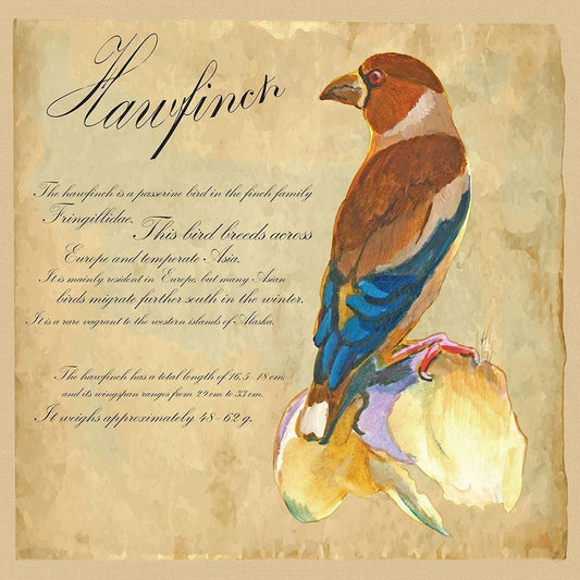 Hawfinch Illustration White Modern Wood Framed Art Print with Double Matting by Kuco