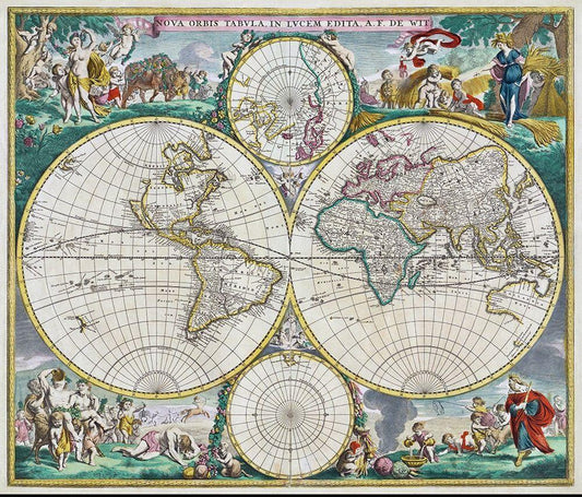 Nova Totius Terrarum Orbis Tabula, 1652 White Modern Wood Framed Art Print with Double Matting by Visscher, Claes Janszoon