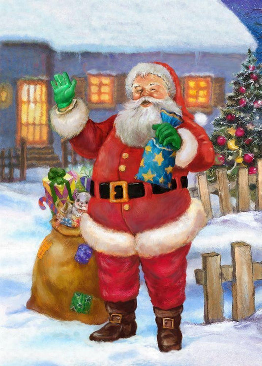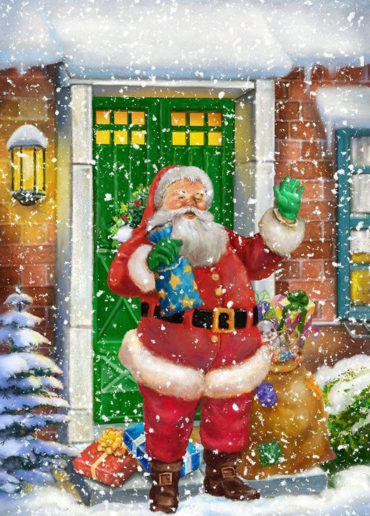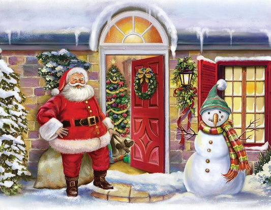 Santa At Porch White Modern Wood Framed Art Print with Double Matting by Hoenderkamp, Patrick