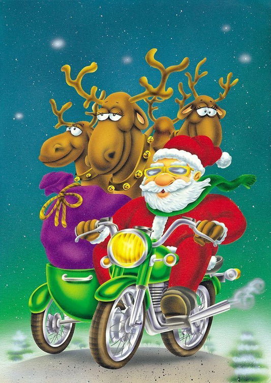 Santa on bike White Modern Wood Framed Art Print with Double Matting by Hoenderkamp, Patrick