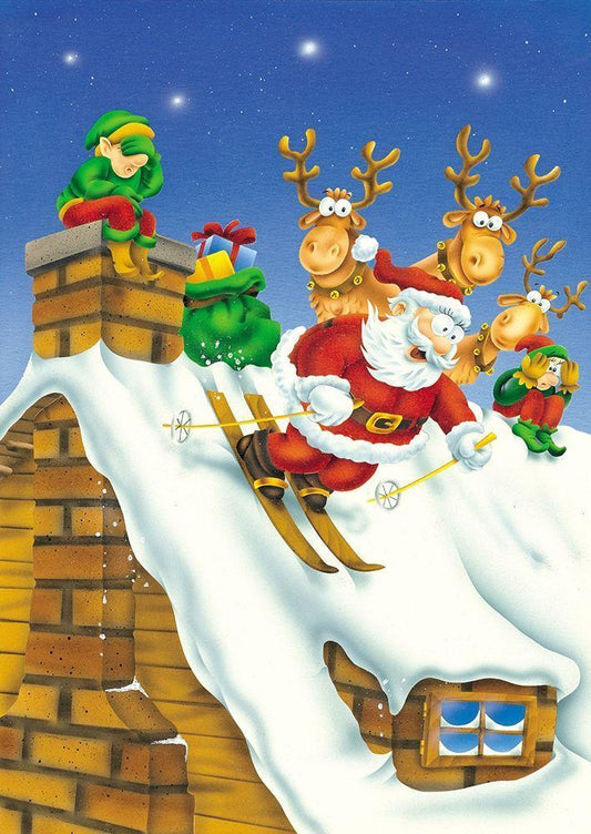 Santa skiing White Modern Wood Framed Art Print with Double Matting by Hoenderkamp, Patrick