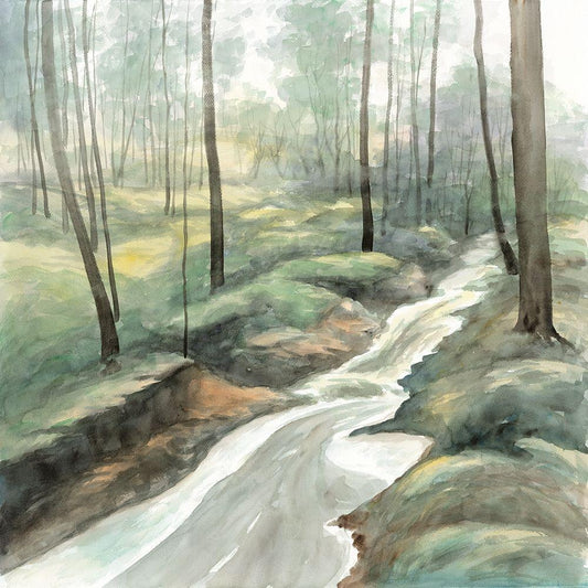 WATERCOLOR WATERFALLS White Modern Wood Framed Art Print with Double Matting by Atelier B Art Studio