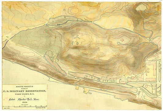 Route sketch of part of U S Military Reservation West Point N Y 1889 White Modern Wood Framed Art Print with Double Matting by Vintage Maps