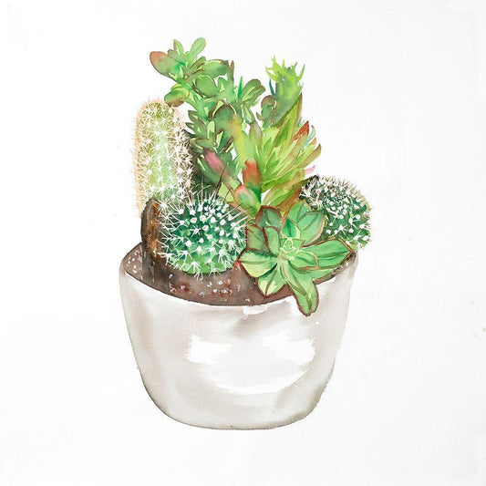 CACTUS ASSORTMENT IN A POT White Modern Wood Framed Art Print with Double Matting by Atelier B Art Studio