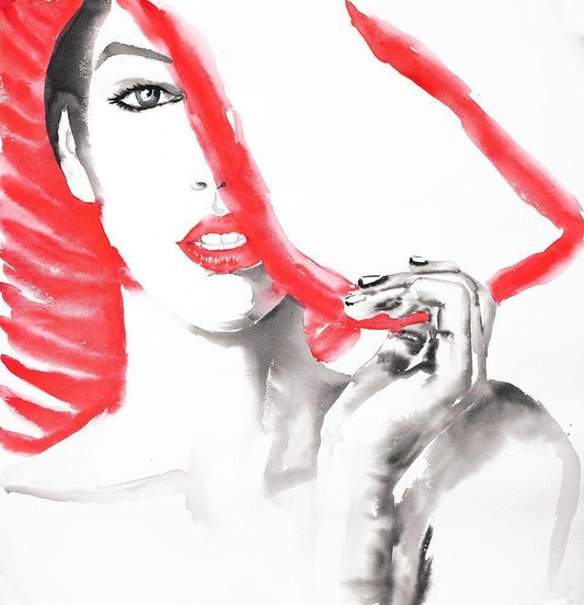 WATERCOLOR DELICATE WOMAN White Modern Wood Framed Art Print with Double Matting by Atelier B Art Studio