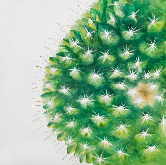 Watercolor Mini Cactus White Modern Wood Framed Art Print with Double Matting by Atelier B Art Studio