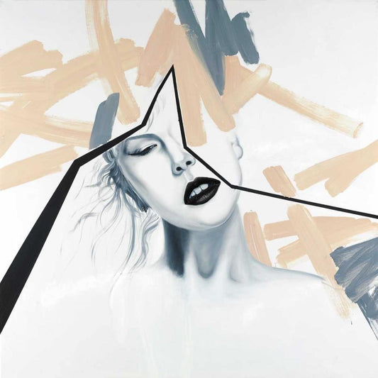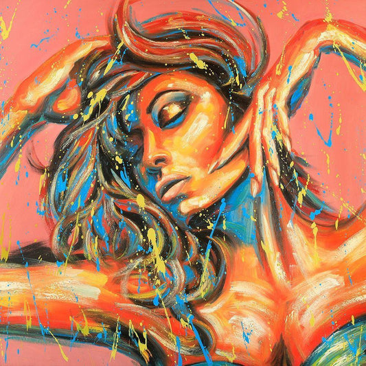 Sensual Tanned Lady with Paint Splash White Modern Wood Framed Art Print with Double Matting by Atelier B Art Studio