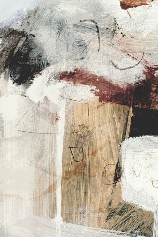 Abstract Beige Line Art White Modern Wood Framed Art Print with Double Matting by Thaitanom, Nikki