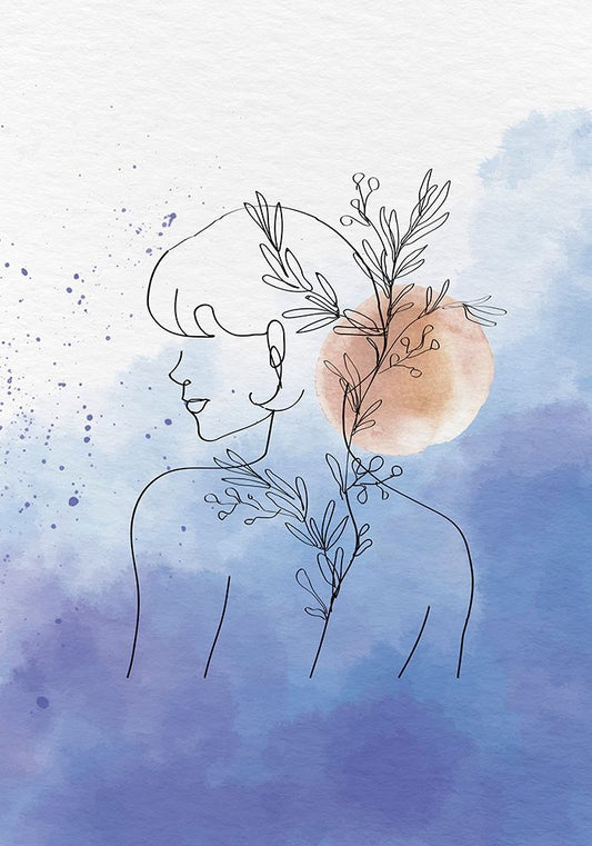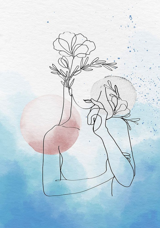 Figure Bleu White Modern Wood Framed Art Print with Double Matting by Pictufy Studio II