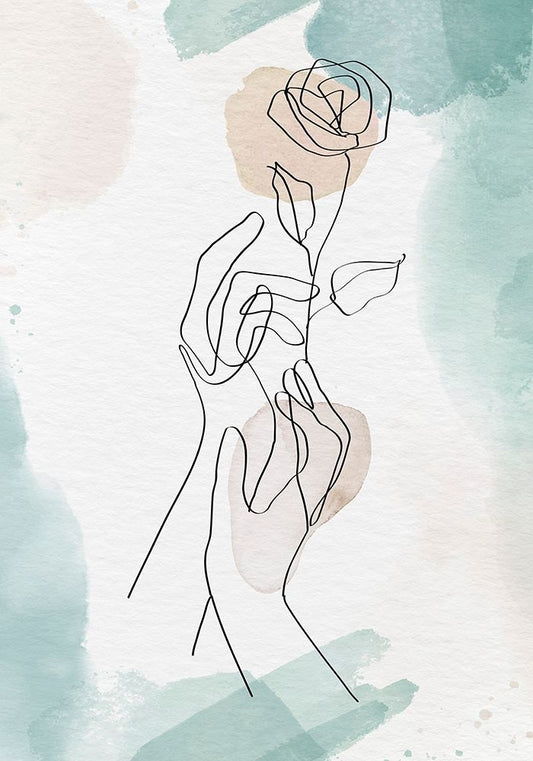 La Rosa Aqua White Modern Wood Framed Art Print with Double Matting by Roze, Fadil