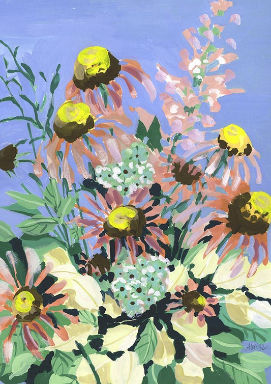 Echinacea Blue Sky White Modern Wood Framed Art Print with Double Matting by Zwara, Ania