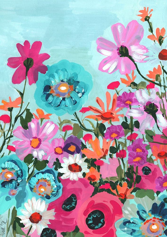 Meadow In June Pink White Modern Wood Framed Art Print with Double Matting by Zwara, Ania