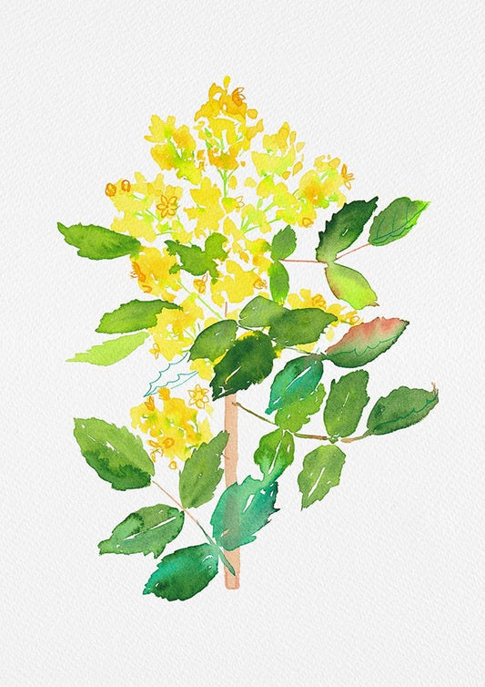 Oregon grape or Mahonia aquifolium botanical painting White Modern Wood Framed Art Print with Double Matting by Kata Botanical
