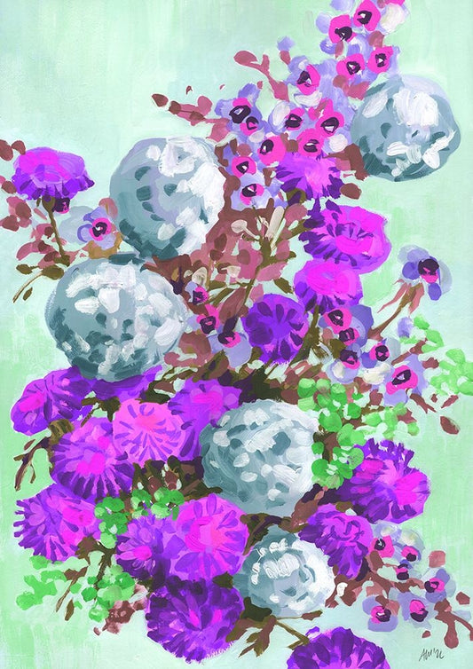 Apple Blossom - Violet White Modern Wood Framed Art Print with Double Matting by Zwara, Ania