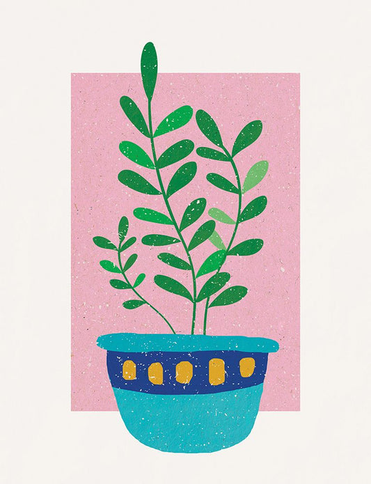 Boho Plant a Pot White Modern Wood Framed Art Print with Double Matting by Demir, Aylin