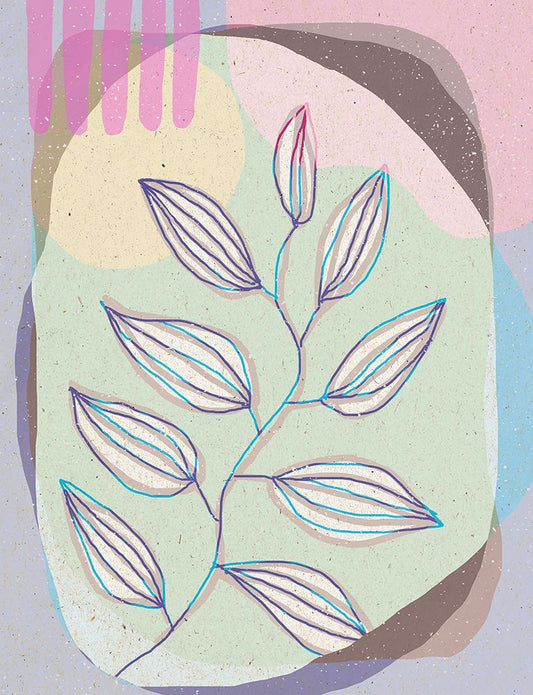 Blue Leaves White Modern Wood Framed Art Print with Double Matting by Demir, Aylin